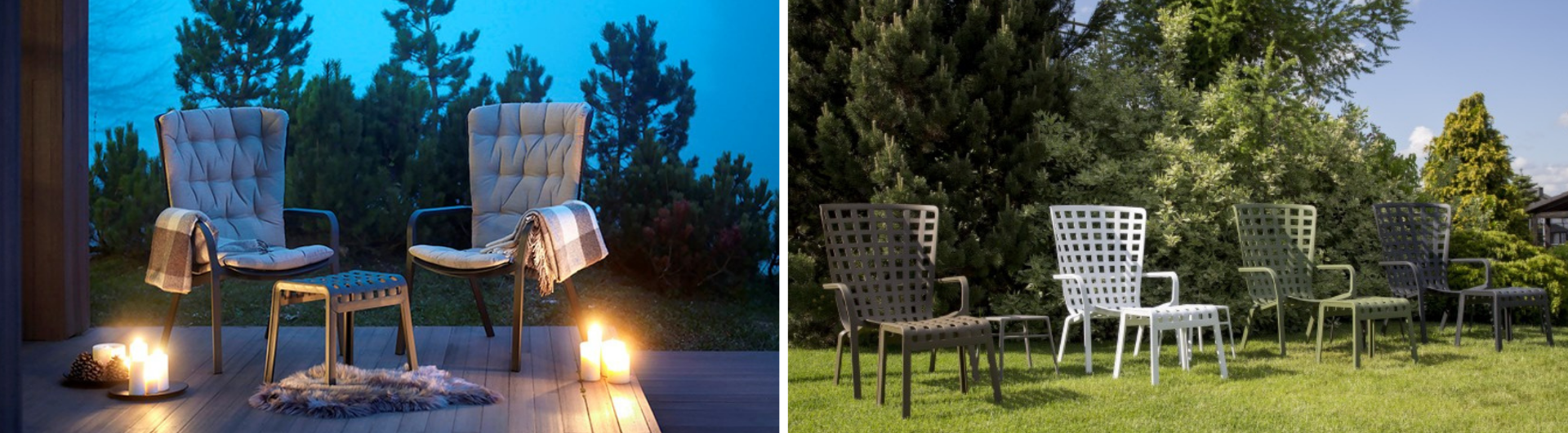 Dream holiday on the veranda? Perhaps that's what designer Raffaello Galiotto had in mind when he designed the Folio collection for Italian brand Nardi . The pleasing design and patented movement system for the back and seat will make sitting down with a book or a cup of tea on the terrace more enjoyable. The armchairs, in which you will want to relax in the fresh air, are also available with upholstered cushions in a variety of fabrics and colours that are ideal for outdoor use.