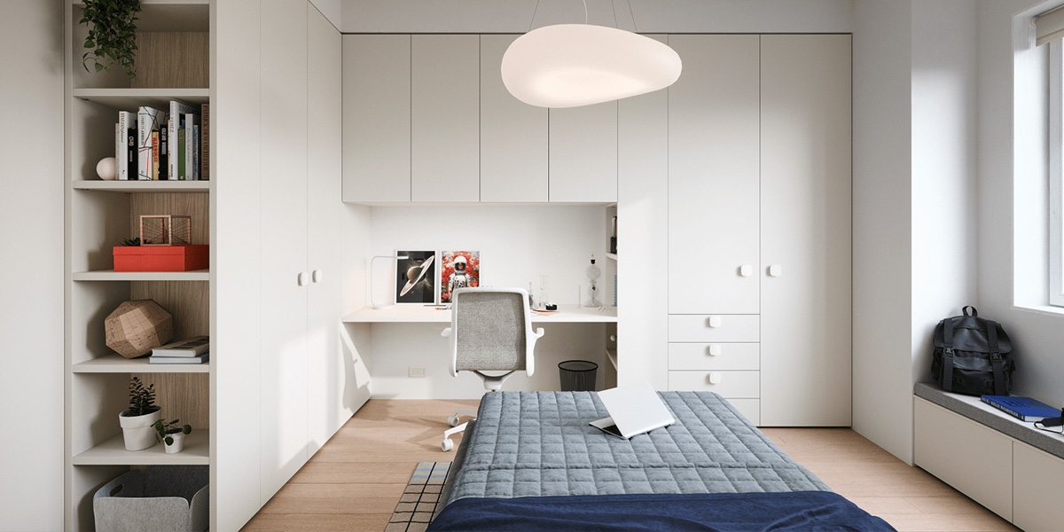Almost adult, distinctive and independent. Young students need a more private, functional space where they can plan for the future, develop their hobbies and have peace and quiet to study and sleep comfortably. NEXT SPACE 30's perfectly coordinated furniture set was assembled to make each piece make sense and create a place fresh for 17+ year olds. The combination of light wood with cream, grey and burgundy will be the perfect backdrop.