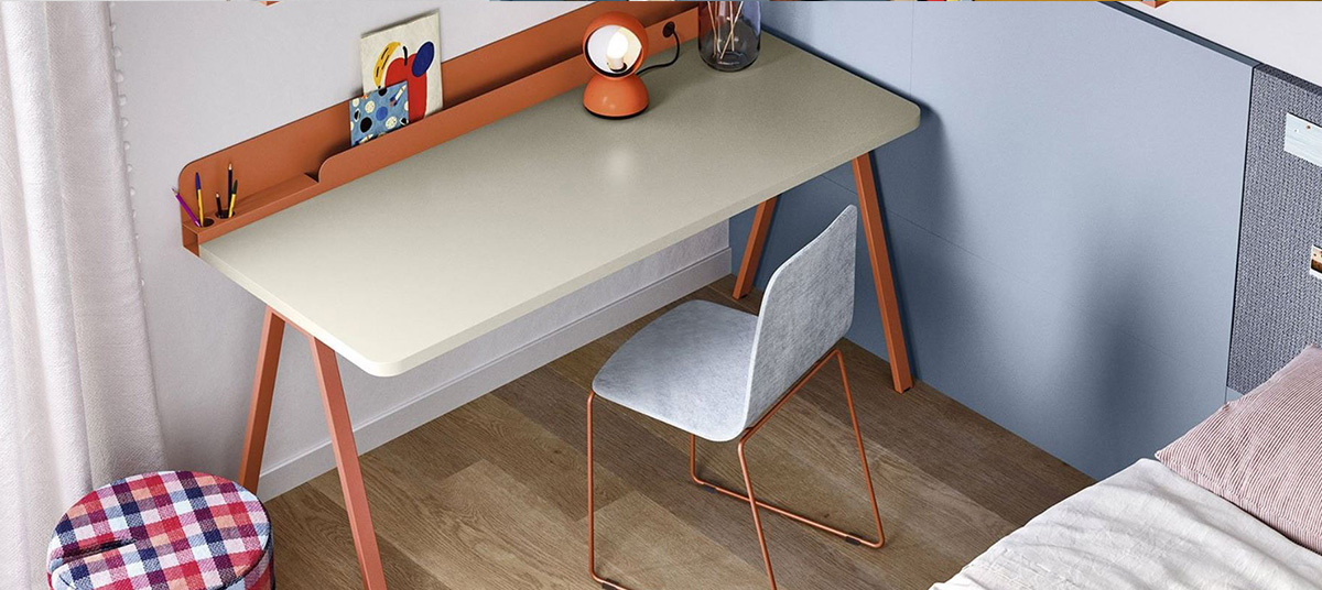 The FOLDER children's desk offers the possibility to store all cables from the monitor or computer in a cable channel that effectively hides them. The desk also includes a compartment for writing utensils and putting away other essentials. We offer a choice of several colours for the table top, detail and metal base. By purchasing a chair and desk, you will create your child's own workspace. From an early age, children develop useful work habits. They have their own place that allows them to realise many of their dreams and ideas, but also a place that needs to be looked after.