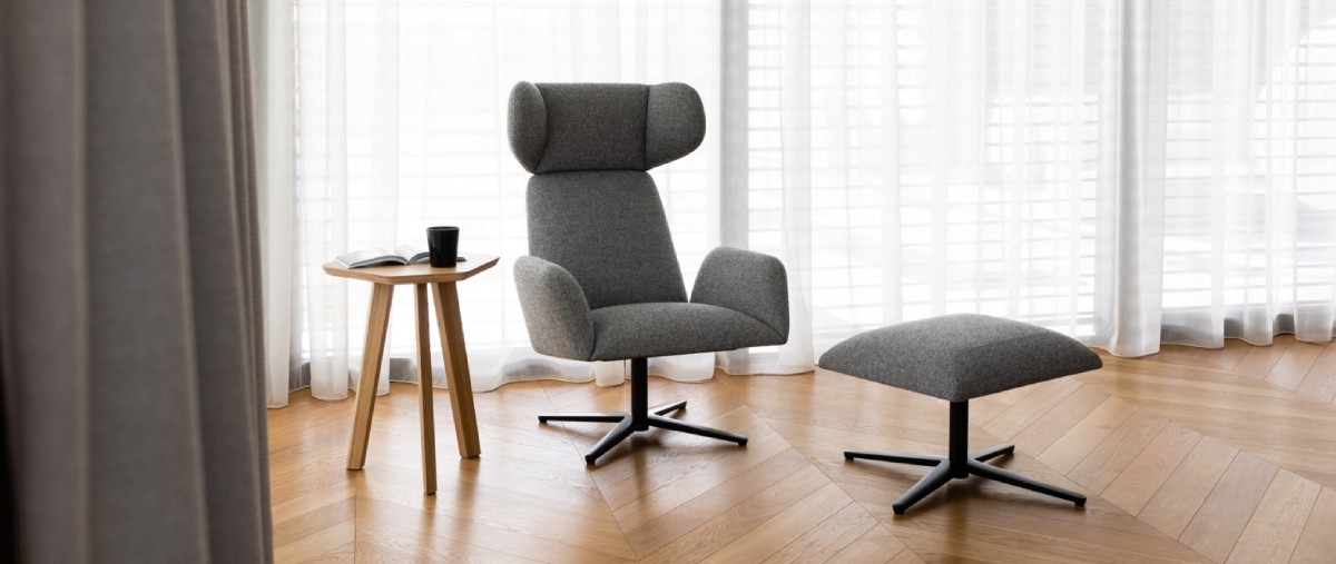 The MANTA collection is inspired by origami - the Japanese art of folding various motifs from paper. The author of the collection is Piotr Kuchciński, who graduated from the Faculty of Architecture at the Poznań University of Technology and has been working with NOTI for 15 years. The characteristic trapezoidal armrests and armrests lean slightly outwards, the soft foam with upholstery sits easily on a subtle base made of steel or ash wood. The steel base can also be supplied painted in a variety of colours. The wooden base is available in a natural shade or in black, grey, dark blue, red and white. The collection of armchairs and footstools is complemented perfectly by tables with typically bent rims. Need help choosing? Our specialists will be happy to advise you, do not hesitate to contact them.
