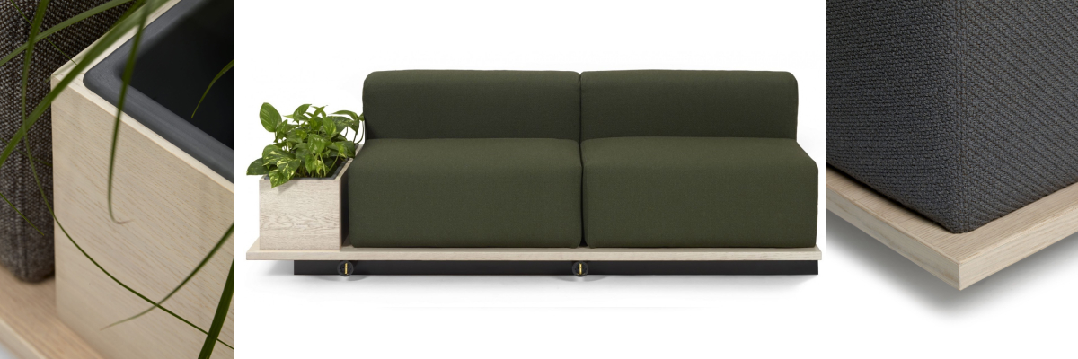 The group of Italian designers Fattorini+Rizzini+Partners designed the Meet modular seating set to be functional in space and variable as needed. The aspect of sustainability and the improvement of the sound characteristics in the room was one of the objectives of this series particularly suitable for commercial spaces. The construction consists of a wooden frame with cold foam wrapped with fire retardant fibre. The high quality solid upholstery is made of fabric. The platform and plant box are made of white pigmented oak veneer and the base is made of black stained MDF. This piece cannot be used individually, it must be attached to another module. It is available in both right and left hand versions and can be completed with a plinth with electric latches. Do not connect the arm side. If you have any questions, please do not hesitate to contact us.