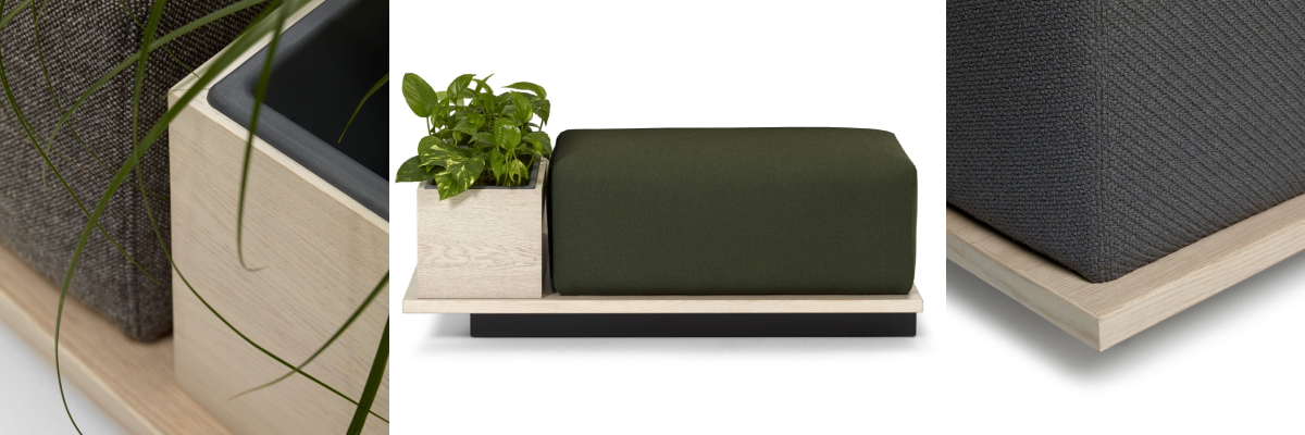 The group of Italian designers Fattorini+Rizzini+Partners designed the Meet modular seating set to be functional in space and variable as needed. The aspect of sustainability and the improvement of the sound characteristics in the room was one of the objectives of this series particularly suitable for commercial spaces. The construction consists of a wooden frame with cold foam wrapped with fire retardant fibre. The high quality solid upholstery is made of fabric. The platform and plant box are made of white pigmented oak veneer and the base is made of black stained MDF. This piece cannot be used individually, it must be attached to another module. It is available in both right and left hand versions and can be completed with a plinth with electric latches. Do not connect the arm side. If you have any questions, please do not hesitate to contact us.