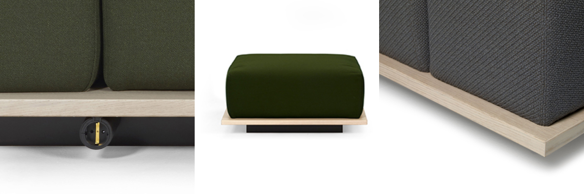 The group of Italian designers Fattorini+Rizzini+Partners designed the Meet modular seating set to be functional in space and variable as needed. The aspect of sustainability and the improvement of the sound characteristics in the room was one of the objectives of this series particularly suitable for commercial spaces. The construction consists of a wooden frame with cold foam wrapped with fire retardant fibre. The high quality solid upholstery is made of fabric. The platform is made of white pigmented oak veneer and the base of black stained MDF. The ottoman cannot be used individually, it must be attached to another module with the right or left side. Can be completed with a plinth with electric latches. If you have any questions, please do not hesitate to contact us.