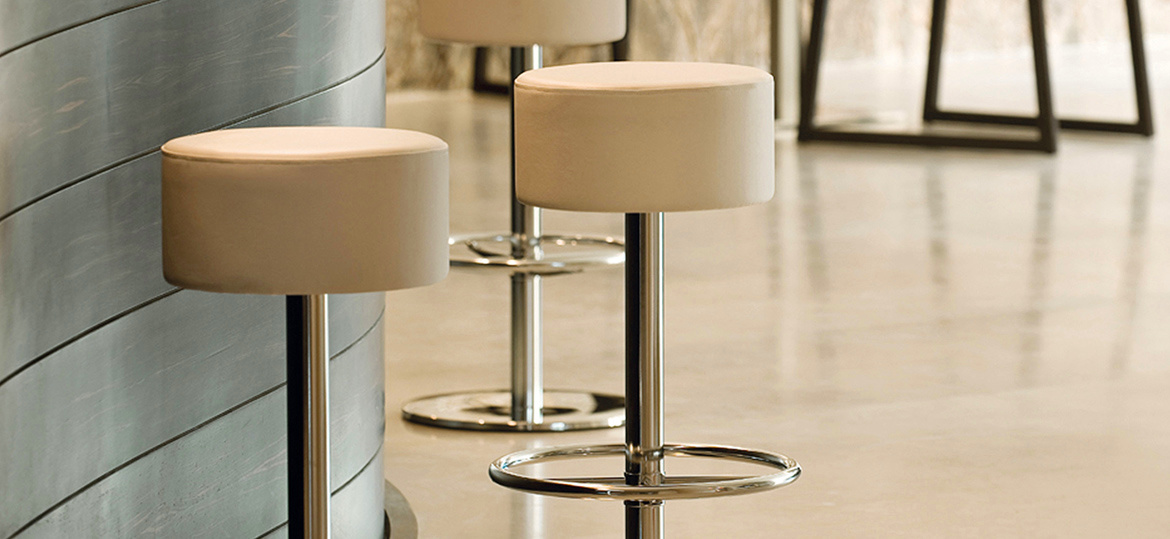 The LOTUS 4417G swivel bar stool shines at a royally equipped bar or in a trendy restaurant. The base in chrome-plated or painted steel or brushed stainless steel contrasts beautifully with the upholstered seat in fabric, leatherette or leather. Didn't choose from our wide range? You can choose your own fabric or leather for purchases of more than 10 pieces. Bet on comfort and timelessness!