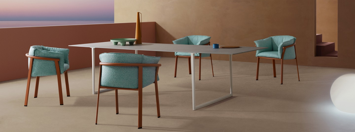 The LAMORRISE chair was created by CMP design studio. The durable and lightweight aluminium frame in several colours is welded to the comfortable armrests. The padded seat and backrest made of polyurethane foam are connected by a zipper and ensure maximum comfort thanks to the presence of elastic belts. The cushions are available in a range of upholstery and can be easily removed from the structure and stored separately or refurbished. Make your poolside, restaurant patio or porch seating more enjoyable with furniture that will last with you for years to come.