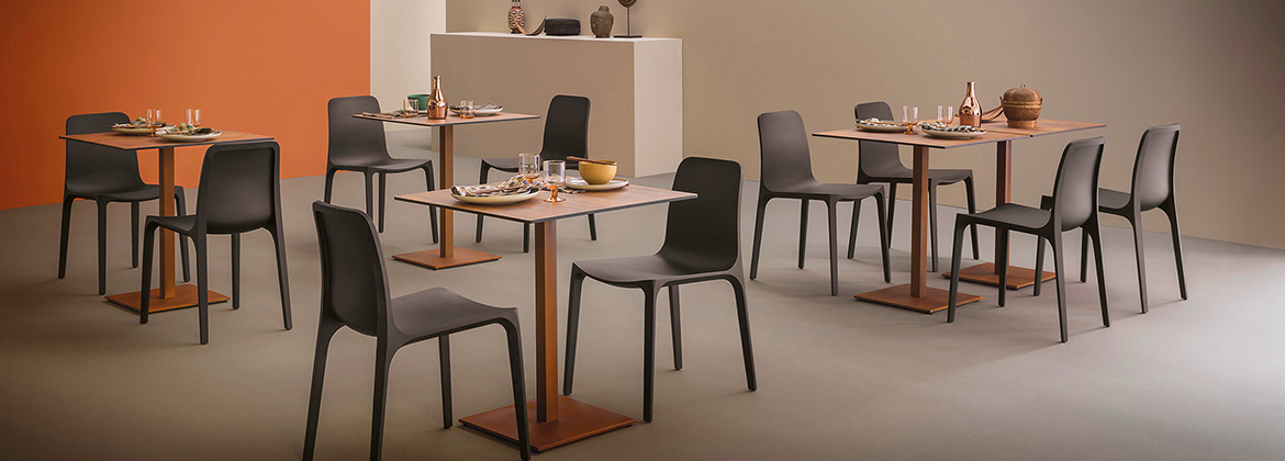 Opening a stylish new restaurant, trendy bar, hotel or just remodeling your kitchen? None of these interiors can do without a proper table. You'll love theINOX collection of tables and table bases from Italian brand Pedrali. The large number of table top and table base combinations will ensure that even the most demanding clientele will have a choice.
