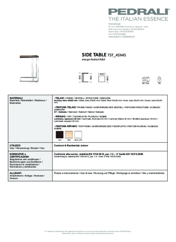 No interior can do without a coffee table - it's a practical accessory on which you can place an unwrapped cup of coffee, a magazine and the TV remote control. The SIDE TABLE with its laminate table top and brushed steel base will become your everyday practical helper. You can choose from several designs.