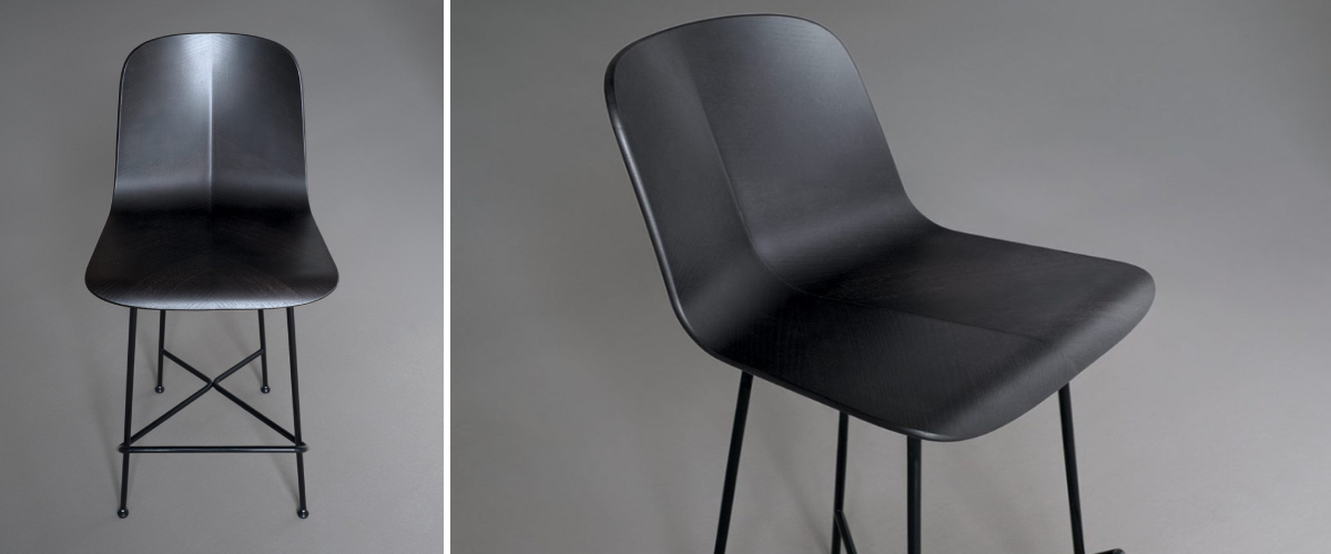 TheHERRINGBONE 115-11/B10 designer high bar stool is the ideal piece for lovers of wooden structures with beautiful natural grain. This honest, sturdy bar stool will stand up to classic and modern interiors without distinction. The chair's solid construction is made of ash or walnut wood in various shades of stains. The seat and backrest are effectively shaped for maximum seating comfort even without the need for upholstery. The slender, elegant metal base is available in shades of chrome or black. An interesting detail is the distinctive curved footrest. With the HERRINGBONE bar stool you will succeed at home in the kitchen as well as in stylish venues such as restaurants or bars. Timeless materials and craftsmanship never go out of style!