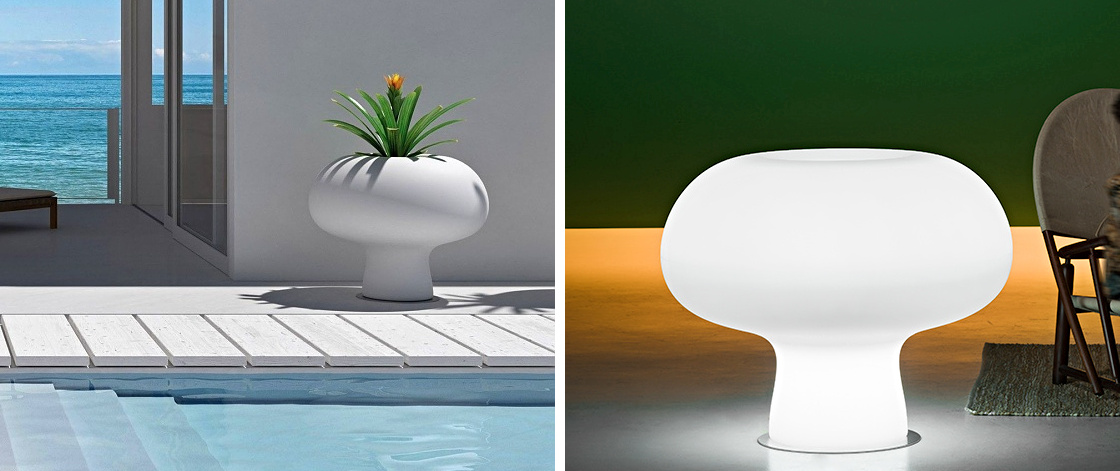 Do you love diverse succulents, exotic orchids and lush climbers? Display them in the BOYO design planter made of polyethylene, which is durable, lightweight and resistant to UV rays and extreme temperatures thanks to its design. The planter with a modern, luxurious look was created for the PLUST brand by the design studio Gentle Giants. The piece is available in a non-glowing version in white. If you want to add a bit of pizzazz to your space, the white glowing version is perfect for you.