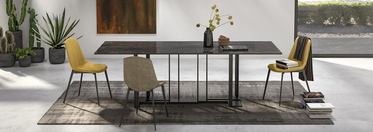The ACCADEMIA table achieves its original industrial style thanks to its metal structure with a rectangular cross-section, which has been hand-soldered with brass paste. You can choose from several shades of lacquer. The table top, available in two sizes, is made of ceramic in different stone or clear tempered glass decorations. If you are looking for interesting furniture in a luxurious way, this piece should not escape your attention!