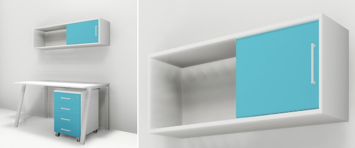 Thepractical hanging shelf with sliding door is an effective solution for any modern medical facility. You will always have all the necessary tools that you will need every day during your work at your fingertips. The body of the simple shelf is made of laminate in wood decor or neutral tones. The design of this piece is entirely in your hands, so you can also choose the sliding door design with a sturdy handle. They can be matched to the cabinet or, on the contrary, create a striking contrast that catches the eye. Inside you will find a wide open space with no separate compartments. We recommend hanging the shelf above a desk, for example. Do you have other specific requirements for the appearance of your furnishings? We produce tailor-made healthcare furniture according to the needs of each customer. Contact our specialists for more information.