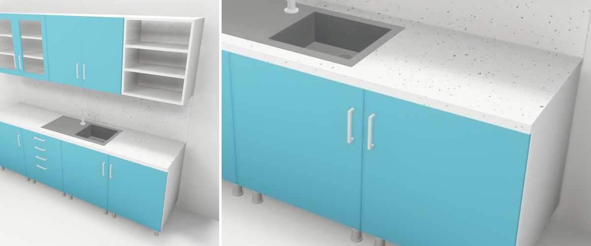 Thepractical 4-drawer undermount cabinet is a piece that can be used in any modern medical facility. You will always have all the necessary tools or writing utensils that will come in handy every day during your professional practice. The model stands on a sturdy and stable metal base. The storage space is hidden behind a double-leaf door fitted with wide handles. The cabinet body is made of laminate in wood or neutral tones. The cabinet is recommended to be placed under the worktop and is suitable for placing a sink for essential hygiene. The design is entirely in your hands, so the door fronts can also be chosen. They can be matched to the cabinet or, on the contrary, create a striking contrast that will attract attention. Do you have other specific requirements for the appearance of your equipment? We manufacture bespoke healthcare furniture according to each customer's needs. Contact our specialists for more information.