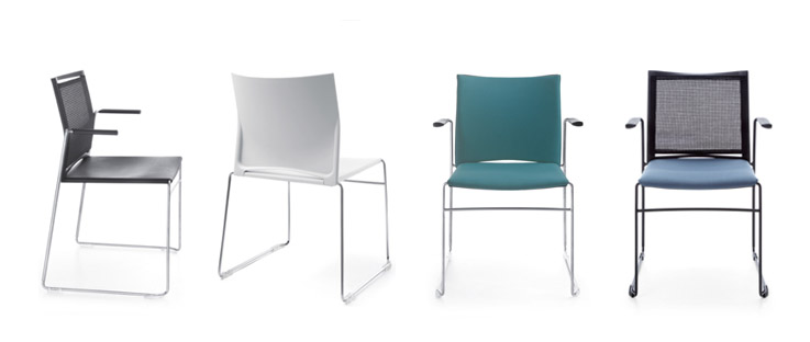 The ARIZ 550V 2P stackable chair with metal frame, original slatted base and plastic seat and backrest with polypropylene surface will tastefully complement, for example, office, conference rooms or study rooms. The base can be selected in black, metallic or chrome. If you plan to stack and move the chairs frequently, the optional trolley will make the job easier. A folding table and a practical connection system can also be ordered for this model. You will appreciate the comfortable armrests on this model. The gliders are available in three versions - standard for soft floors, felt for hard floors and a universal Teflon version is also available.