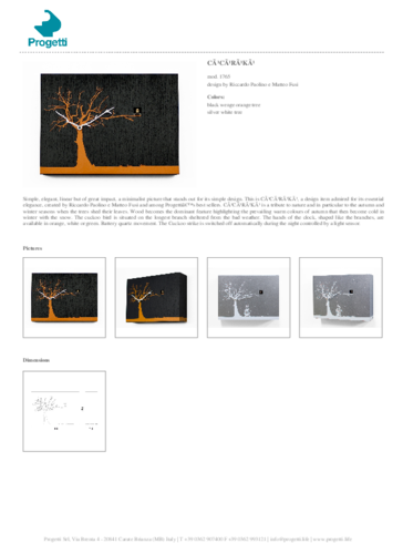 TheCùCùRùKù cuckoos could be described as simple, elegant, linear and impressive. At first glance, they look like a minimalist painting that stands out for its simple design. The elegant CùCùRùKù cuckoos , one of PROGETTI 's best-selling pieces ever, are designed by Riccardo Paolino and Matteo Fusi. The CùCùRùKù cuckoos symbolize a tribute to nature, especially the autumn and winter season when the trees shed their leaves. It is with this inspiration that the wood, which is the main material of the clock, is linked. The cuckoo itself is then located on the longest branch protected from bad weather. The cuckoo clocks are equipped with a light sensor so that they automatically switch off during the night. The CùCùRùKù cuckoos are available in several colours.