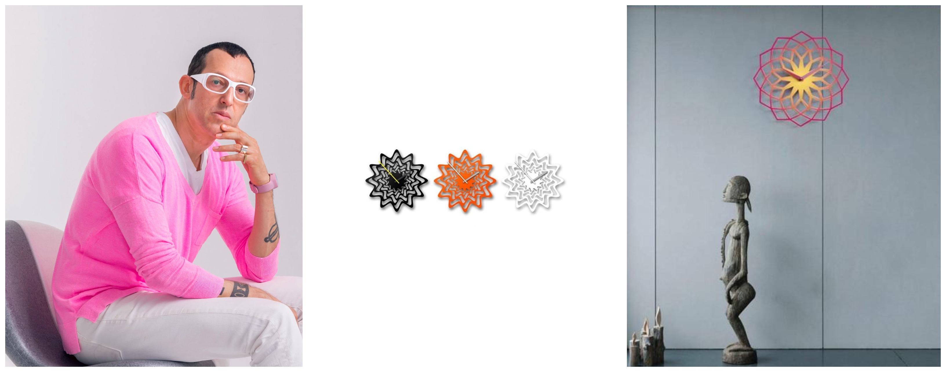 Designer Karim Rashid has created a beautiful modern Skallop wall clock, which resembles a flower in shape. The minimalist lines and cheerful colours are sure to stand out on a wall in your dining room, living room, kitchen or office. The clock is made of steel and you can have it in two beautiful colours.