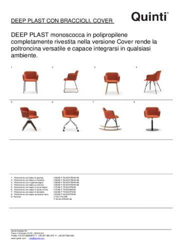 DEEP is Quinti 's new collection with innovative design and technical features, characterised by soft shapes and rounded corners. Born out of a collaboration with Archirivolto , the range includes Deep Hospitality, Deep Executive, Deep Managerial, Deep Stool, Deep Lounge, Deep XL, Deep Plastic, Deep Cushion, Deep Soft, Deep Cover, Deep Stripes, Deep Bio and Deep One, each serving a different purpose and guaranteed to have something for everyone. It is thanks to the large portfolio that you can easily furnish your entire home, whether family or office, with furniture from a single collection to create a comprehensive and cohesive design. So what are you still hesitating about?