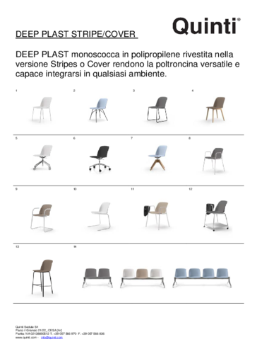 DEEP is Quinti 's new collection with innovative design and technical features, characterised by soft shapes and rounded corners. Born out of a collaboration with Archirivolto , the range includes Deep Hospitality, Deep Executive, Deep Managerial, Deep Stool, Deep Lounge, Deep XL, Deep Plastic, Deep Cushion, Deep Soft, Deep Cover, Deep Stripes, Deep Bio and Deep One, each serving a different purpose and guaranteed to have something for everyone. It is thanks to the large portfolio that you can easily furnish your entire home, whether family or office, with furniture from a single collection to create a comprehensive and cohesive design. So what are you still hesitating about?