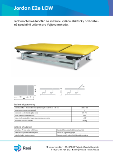The high-quality JORDAN Vojt Method recliner is suitable for both the doctor's office and for home physiotherapy. The lowered metal construction is also suitable for immobile patients and is available in many colours, as is the washable bed surface upholstery. The height of the two-segment recliner can be adjusted using an electric mechanism with manual control. However, you can order a foot-operated or structural control as well as a safety-less box for switching off the electric motor. The head section is adjustable by means of a gas strut. For an additional charge, the recliner can be equipped with castors, a face hole (for massages), or a paper towel holder. Load capacity is 180 kg. If you have any questions, please do not hesitate to contact us.