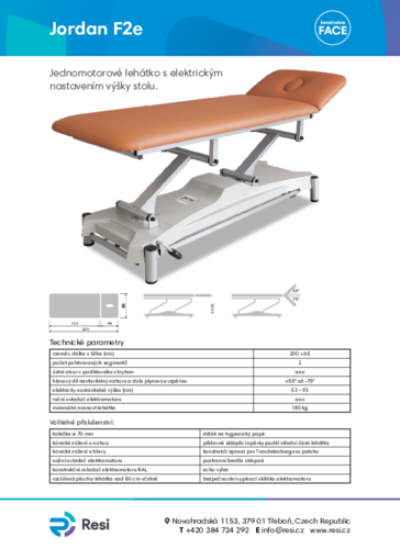 Thehigh-quality JORDAN examination couch is suitable for examination in the doctor's office as well as for physiotherapy or massage. The metal construction of the FACE is available in many colours, as is the washable upholstery of the bed surface. The recliner has two segments, the head section with face opening and cover is adjustable by means of a gas strut. The overall height of the lounger can be adjusted thanks to an electric mechanism, to which two types of control or safety shut-off box can be added. The load capacity is 180 kg. At an additional cost, the chaise lounge can be equipped with castors, a paper towel holder, a headrest, additional folding armrests along the middle part of the chaise lounge or an extension of the storage area. Side folding bars, tapered taper at the legs or head and echo cut-out can be ordered on request. Mechanics for the Trendelenburg position are also available. If you have any questions, please do not hesitate to contact us.