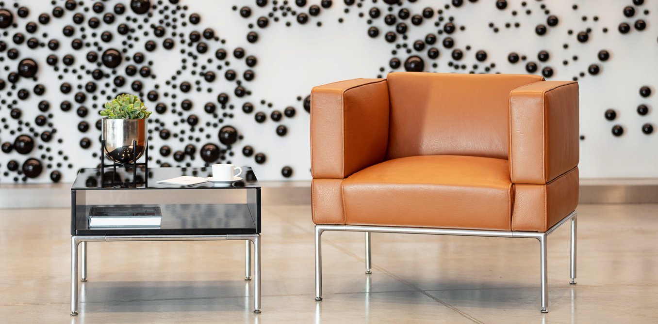 Can you see yourself relaxing on this chair in the hotel lobby or in your work space on your lunch break? We do. The single-seat CUBIX armchair with its combination of cubic and organic shapes was made by designer Kaie Stanii. Upholstered in fabric or leather, the chair stands out for its distinctive seating comfort thanks to the bellows springs and the softened edges of the backrest. Elegant stitching details and a chrome tubular frame place the seat in the executive category. Not sure which combination is right for you? Do not hesitate to contact us.