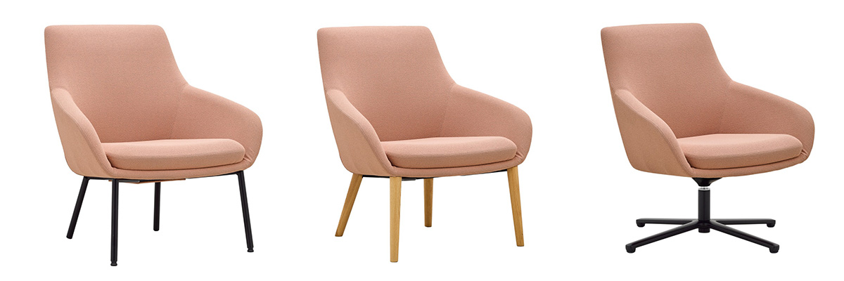 Maximum comfort and functionality. Studio Alegre Design designed the KLOE armchair to refresh commercial and private spaces with its sophisticated design. The shape of the shell highlights the detailed upholstery craftsmanship, while the central metal base in black lacquer or polished aluminium finish contrasts pleasantly with its volume. The upholstery is available in a wide range of fabrics. The base can be complemented with practical gliders with Teflon or felt, and a rocking mechanism without locking can be added. The KLOE collection offers chairs and armchairs on a variety of base types, so you are guaranteed to have a choice whatever your preferences.