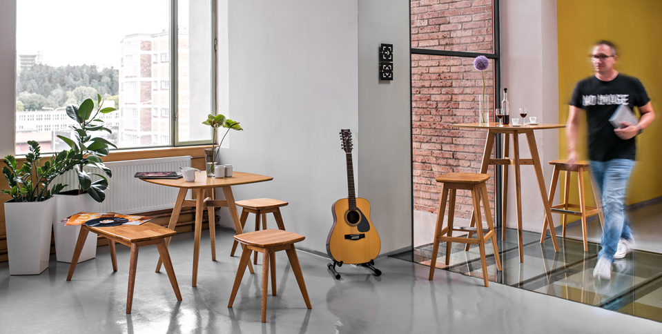 WITTY is a wooden collection of stools, bar chairs and tables. Thanks to the wood, they give a natural, friendly and warm impression. The long straight base and thin table or seat top create a perfectly elegant and subtle look. The fabric upholstery stands out well in pastel and bright colours. WITTY is a furniture and accessory in one and will find use not only in informal places in companies, but also in cafés, restaurants, hotels or homes.