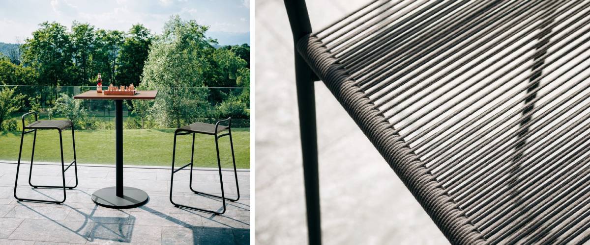 Thestylish HARP bar stool will dazzle you with its simplicity and airiness that fits perfectly into the exterior. Thanks to the aluminium construction , the chair with its stable slatted base is very light and can be easily moved from place to place. You can choose the design in milk, grey or rust. However, it is the originally designed seat made of taut ropes that attracts attention. You can choose them in various colours, including recycled eco-friendly variants. And of course there is a comfortable footrest. Treat yourself to lightness, in body and soul!