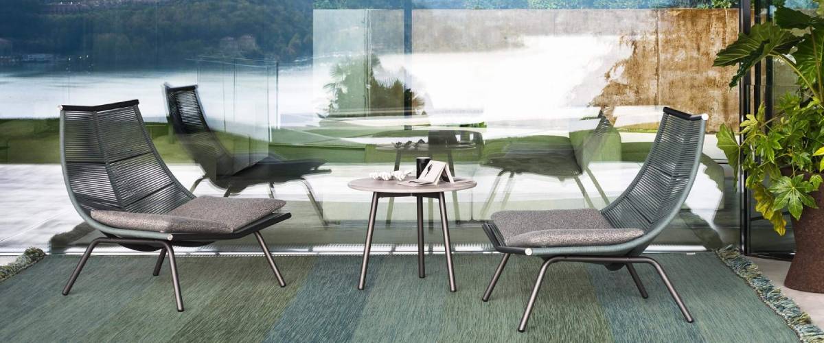 TheLAZE design lounge chair with upholstered seat is another contribution to RODA's extremely creative portfolio. It is the brainchild of designer Gordon Guillaumier, who has also used the variability and playfulness of ropes in this case. The chair stands on a modern, bevelled four-legged base made of powder-coated stainless steel. It is available in a choice of light, dark or rust. The seat and backrest are made ofpolyester or acrylicropes in various colours in the offstructure. You can also choose recycled versions. In addition, this version of the chair has a very comfortable and durable upholstered seat in a variety of shades, or you can have it customised with your own fabric. The LAZE lounge chair is particularly suited to contemporary spaces where original and unpretentious style is a must.