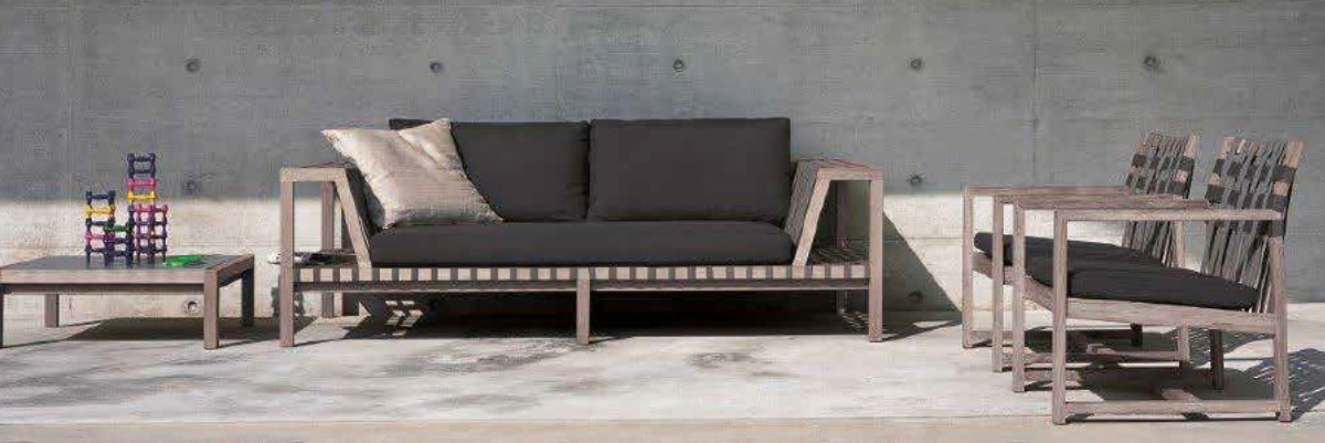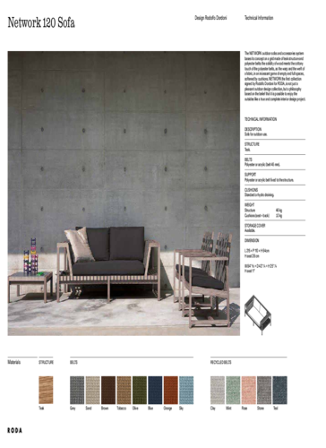 The NETWORK outdoor sofa was designed by designer Rodolfo Dordoni as a full-fledged representative of outdoor living. The clean lines and elegant simplicity make it look light yet cosy. The sofa is based on the concept of combining a teak structure and durable polyester or recycled strips in several colour variations, which are spectacularly interwoven with each other (their colour is chosen in the design detail). The generous seat and back cushions are upholstered in the fabric of your choice, including the option of your own material. Relax on the terrace or in the garden, with the NETWORK collection it will do the trick!