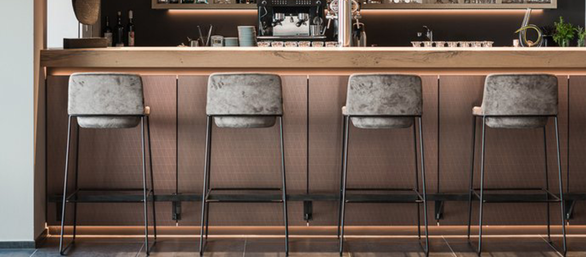 High bar stools are mainly used in restaurants, bars, bistros and other eating establishments. It is characterised by a seat height of around 75 cm. For a high bar stool, it is recommended to have a bar top between 110 and 115 cm high.