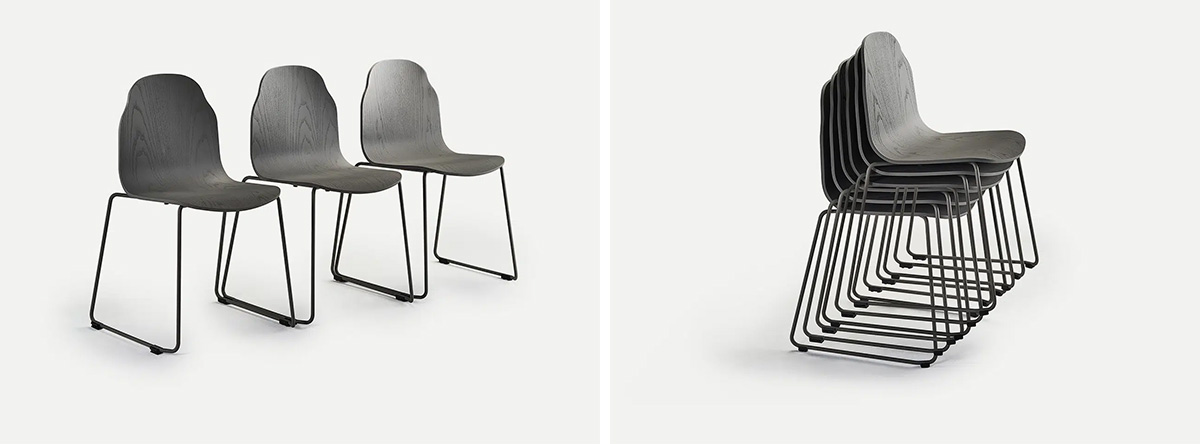 Thewooden BODY chair with metal base immediately catches the eye with its backrest shape, which evokes the shape of the human body. The designer Sylvain Willenz has projected simple organic lines and designed it to fit in with different types and styles of interior thanks to its versatility. This piece is made from moulded and layered ash veneer, which is available in a natural finish or a wide range of colour stains. It's up to you whether you choose neutral tones or prefer a pop of colour. The lightweight and modern slatted base is made from painted metal and is available in a wide range of colours. The chair is stackable. The entire collection has been created sustainably and with the environment in mind. Bet on minimalist design and quality and furnish your home or business with a piece that will live with you for years to come.