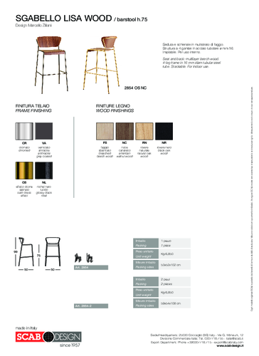 TheLISA high stackable bar stool from the Italian brand SCAB stands out with its original curves and fine steel construction with footrest in a variety of finishes. The seat and backrest are made of several types and shades of solid wood. The height of the seat is 75 cm. Stackability allows you to stack the chairs on top of each other, saving you space and making it easier to handle and store the chairs in the off-season. The practical transport trolley, which can be ordered (see accessories), is also perfect for this purpose. The durability of these chairs is backed up by the CATAS load certificate, making them a great choice for the home as well as for the bar or restaurant. You will appreciate the possibility to combine the bar stool with other LISA models in the same style.