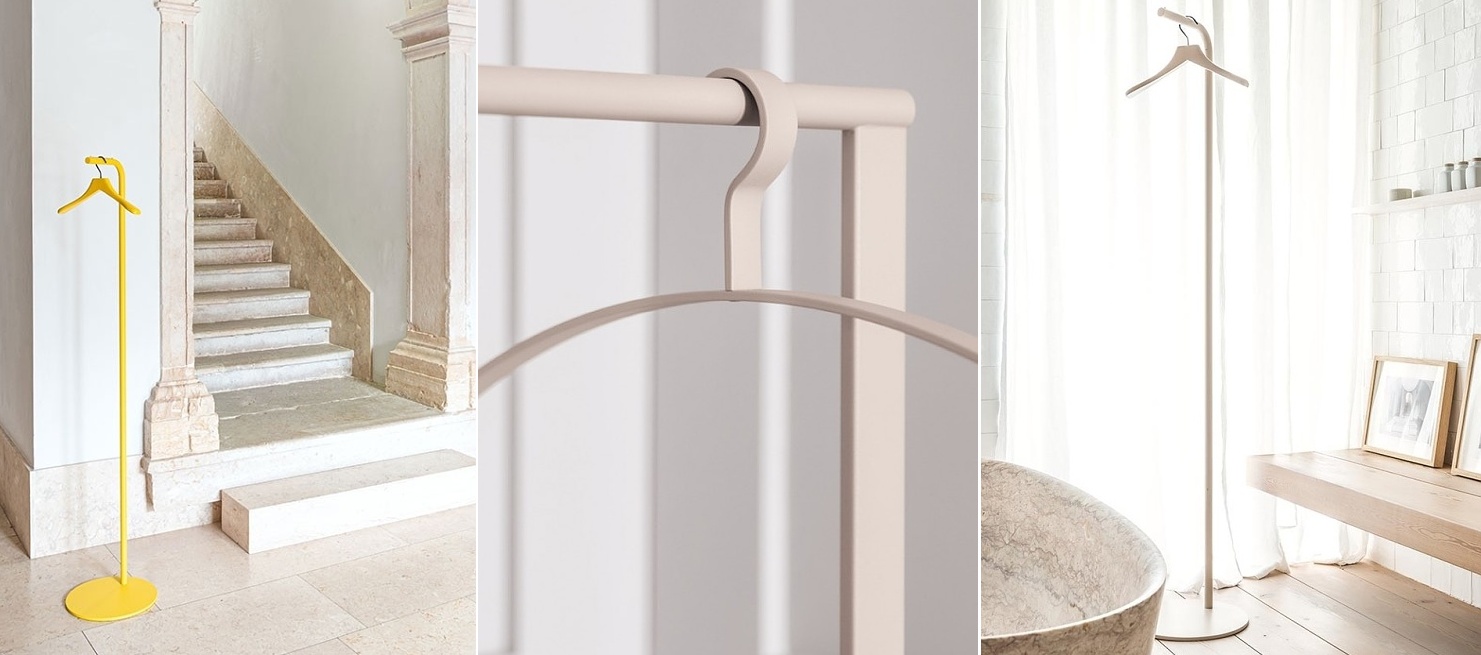 You'll love the BOW designer floor rack for its multifunctional use in the interior. The sturdy, stable construction of the rack is made of powder-coated metal in four colour variants. The powder coating of the metal guarantees a solid layer of colour without the need to renew it even after years of use. The 25 mm diameter metal support bar can hold up to 7 kg when evenly distributed. Clothes can be hung using the hangers. On the top of the carrier bar there is an almost invisible, flat plastic strip that prevents damage to the paint. Thanks to its compact design, it looks airy, creates free space and is ideal for narrow corridors. The coat rack is suitable not only for modern interiors, but also for office or hotel spaces. Add a touch of minimalism to your interior.