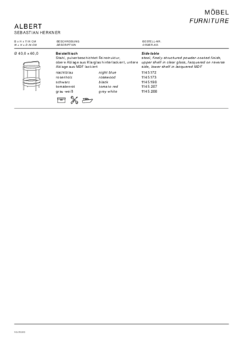The ALBERT side table comes from the mind of renowned designer Sebastian Herkner. It will stand out next to the sofa, play the role of a bedside table with ease or serve as a serving table. Its modern shape will fit into both home and public interiors. In addition to the top, it also includes a shelf for small items. It is made of lacquered metal, so you can be sure that it will easily withstand years of use.