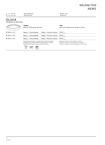 Just as the edges of the most perfect Italian pizza are raised, so it is with the OLIVIA tray. The design duo Läufer & Keichel found inspiration in this Italian dish and designed an accessory that can make everyone's day. The tray in three sizes is made of wood lacquered in many available shades. All three sizes fit together, so they can be layered and easily stored. Both sides are milled the same, the shape does not differ. It's up to you whether you want to serve treats on the tray or use it for decorative purposes. Either way, it will look great.