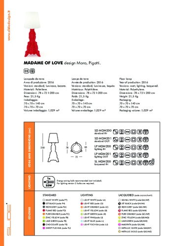 Inspired by Italian Baroque art, the MADAME OF LOVE floor lamp will enchant you with its elegant design that will lend a touch of luxury to your interiors. The product is made of high quality polyethylene and is designed for both indoors and outdoors. Whether you want to decorate your bedroom or hotel rooms with this piece, one thing is certain. It will always draw all the attention to itself.