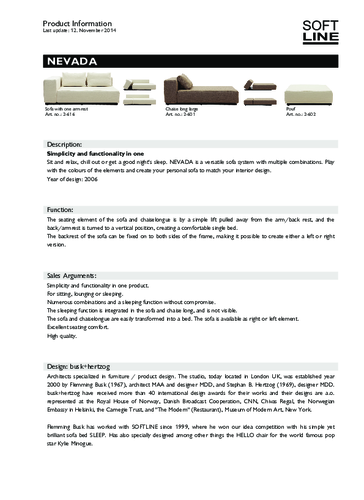 The elegant lounge chair from the design duo Busk+Hertzog can be part of the NEVADA modular system, which allows you to combine individual elements and create tailor-made sets for your home and commercial interior. Of course, it can also serve equally well as a stand-alone unit. With a simple movement you can turn the lounger into a bed, so it is also suitable for small interiors where space needs to be managed sensibly. This piece is fully upholstered and is available in many colour options. If desired, custom material can be supplied (consumption is 6.8 m²). One cushion is included. The lounger has a stainless steel base in black lacquered finish and is filled with high quality adaptable foam with increased fire resistance. So get creative and build a minimalist seating set according to your imagination and the possibilities of your space. It is also available in a smaller version.