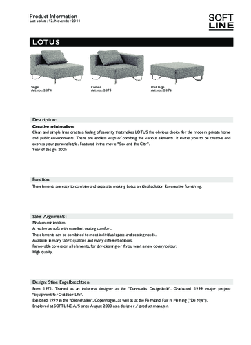 Stine Engelbrechtsen was born in 1972 in Denmark. She studied industrial design at the "Danmarks Designskole" and published her graduation thesis in 1999 under the title "Furnishings for...