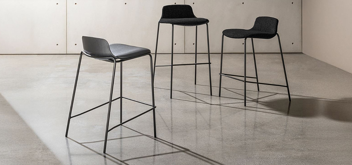 The clean design of the OLLY bar stool brings elegance to any interior. Its versatile shapes will fit into modern dining rooms, upscale restaurants and office spaces. A polypropylene shell with soft upholstery in a wide range of fabric or leatherette colours rests on a metal structure, available in several designs. The barstool is available in two heights. The collection includes both pure plastic and upholstered versions of dining and bar chairs. So enrich your home or business with comfort and style! If you have any questions, please do not hesitate to contact us.