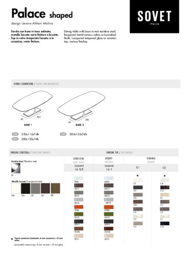 The new dining table completes the Palace collection and its modern design makes it suitable for any interior. It will become an ornament not only in the dining room, kitchen, but also in the office. The table top is rectangular with rounded corners and is made of glass or ceramic with different colour finishes. The solid base is available in stainless steel or painted metal. There are also several table top sizes to choose from. Treat yourself in royal style!