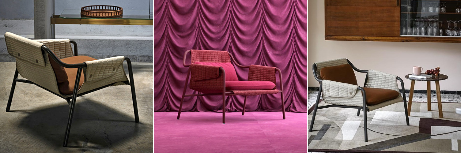 The JACKET armchair found not only its name, but also inspiration in the fashion industry. The piece, with its tubular frame made of mild steel and powder-coated, boasts quilted upholstery that is folded at the back of the frame to resemble a jacket collar. Button detail is used to attach the padded section to the frame at the back and sides. This stunning piece by French designer Patrick Norguet is available in several upholstery options and includes two comfortable cushions. Not sure about the upholstery? Contact us and we'll be happy to help you find a piece that will fit your space.