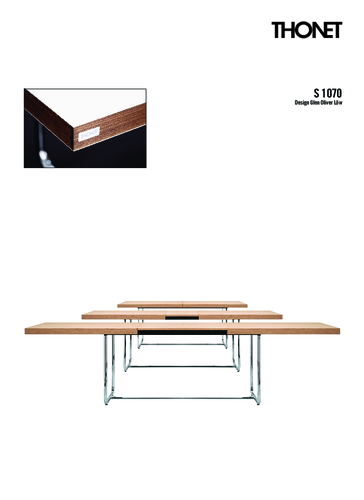 Afolding table with elaborate details, that's the S 1071. The filigree, elegantly curved structure in bent steel combined with a simple wooden table top. The basic table top is 200 x 90 cm, then can be expanded to 240 x 90 cm or 280 x 90 cm by inserting additional table tops. The thickness of the table top is 60 mm. The table top is available in natural beech or stained. Slatted structure in chrome-plated or painted steel.