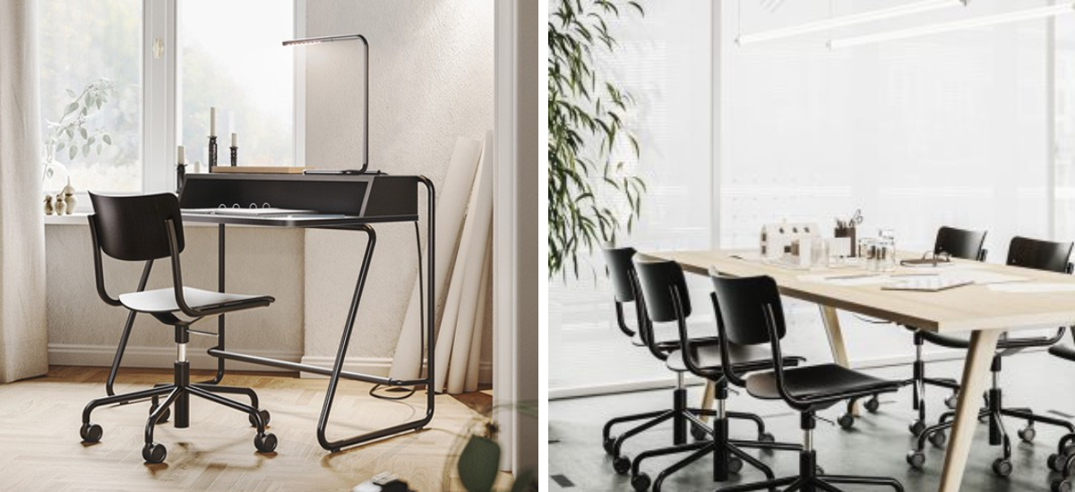 The S 43 office chair designed by Mart Stam exudes moderation and quality. He combined simple aesthetics with comfort, as well as a tubular steel frame with moulded plywood beech shells for the seat and backrest. The chrome-plated metal base swivels and is height adjustable. You can choose from chrome or black lacquered versions. Mobility is ensured by castors. The backrest and seat are available in neutral and bright stained colours. The simple form makes this chair an icon in the field in the modernist furniture direction, and the materials used promise high durability and resistance. We also offer a version with armrests.