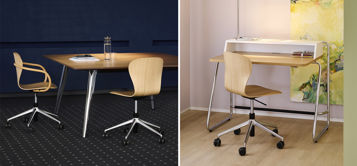 Designed by the design duo Sam Hecht and Kim Colin, theS 220 design chair combines modern rounded shapes with Nordic minimalism. The chair's curved backrest gently cradles your back, making you feel comfortable without the need for upholstery. The chair stands on a metal height-adjustable base in aluminium or black. Practical castors ensure mobility. The shell of the seat and backrest is made of oak or walnut veneer. You can choose a natural finish or different shades of staining to fully adapt the furniture to the look of your interior. The S220 chair will be at home at the desk or in the conference room. We also offer a version with armrests.