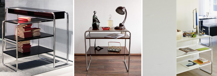 Whether you need a serving table or a storage space, the B 22 a table can handle just about anything. The elegant shelf-type table from Marcel Breuer is suitable for cafés, office spaces and home interiors. The bent steel structure is chrome-plated. The table top is available in wood - stained or lacquered. The shelves are in the same material as the table top.