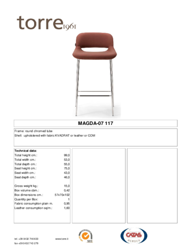 The comfortable MAGDA bar stool was born from a design by the design duo Carlesi Tonelli. The metal base is available in several shades of lacquer including chrome, brass or copper finishes. The silhouette stands out for its geometric but rounded lines and the interesting opening in the backrest. A wide range of textile and leather upholstery ensures that this piece will easily match the rest of the interior furnishings. It is even possible to add your own material. A decorative seam can be made on request. The MAGDA collection will make a private dining room, a hotel, a restaurant or an office space feel cosy.