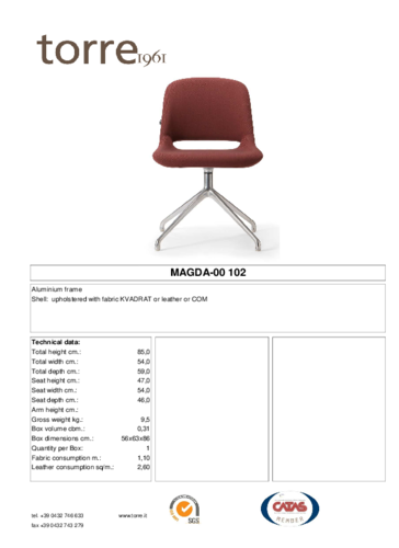 The comfortable MAGDA chair was born under the direction of the design duo Carlesi Tonelli. The swivel lacquered metal base is available in several attractive shades or in aluminium. The silhouette stands out for its geometric but rounded lines and the interesting opening in the backrest. A wide range of textile and leather upholstery ensures that this piece will easily match the rest of the interior furnishings. It is even possible to add your own material. A decorative seam can be made on request. The MAGDA collection will make a private dining room, a hotel, a restaurant or an office space feel cosy.