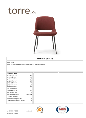 Individual client needs, first-class quality and innovative products that will last for many years. The Italian brand Torre has been gathering experience since 1961 and offers a wide range of chairs, armchairs and tables suitable for both domestic and commercial spaces. It follows new trends but creates its pieces to be elegant and timeless. The cooperation with renowned designers of international renown and a number of hotel and restaurant realisations testify to its popularity among professionals and the public.