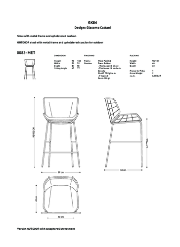TheSKIN bar stool comes from the mind of designer Giacomo Cattani, who designed it as an idea of a second skin for your spaces, hence its name. The powder-coated tubular construction gives the chair a visual lightness, while the upholstered seat and back soften the overall impression. The base and shell are available in many finishes. The upholstery can be selected from a wide range of fabrics and leathers. If desired, custom material can be supplied. SKIN is available in two sizes and is the ideal choice for your residential and commercial furnishings. If you have any questions, please do not hesitate to contact us.