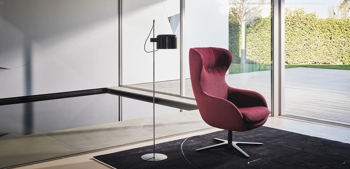 The LUCILLE armchair embodies the harmonious connection between the past and the present. The time-honoured, iconic shapes of the eared shell and the four-arm metal base are now dressed in a modern coat. The upholstery is available in a plethora of colours, including the option to supply your own material. The wide and enveloping seat cushion ensures comfortable relaxation while becoming a dominant feature of the interior. For a complete sense of comfort, the LUCILLE armchair can be complemented by the matching footstool.